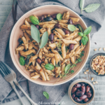 Traditionally served with tomato sauce, I love this quick pesto version. Especially in summer when all those fresh herbs cannot seem to stop growing it’s a great way to use them all and turn them into a healthy and super nutritious meal. Like this super quick and easy pasta with fresh basil, sage and pine nuts. Enjoy it.