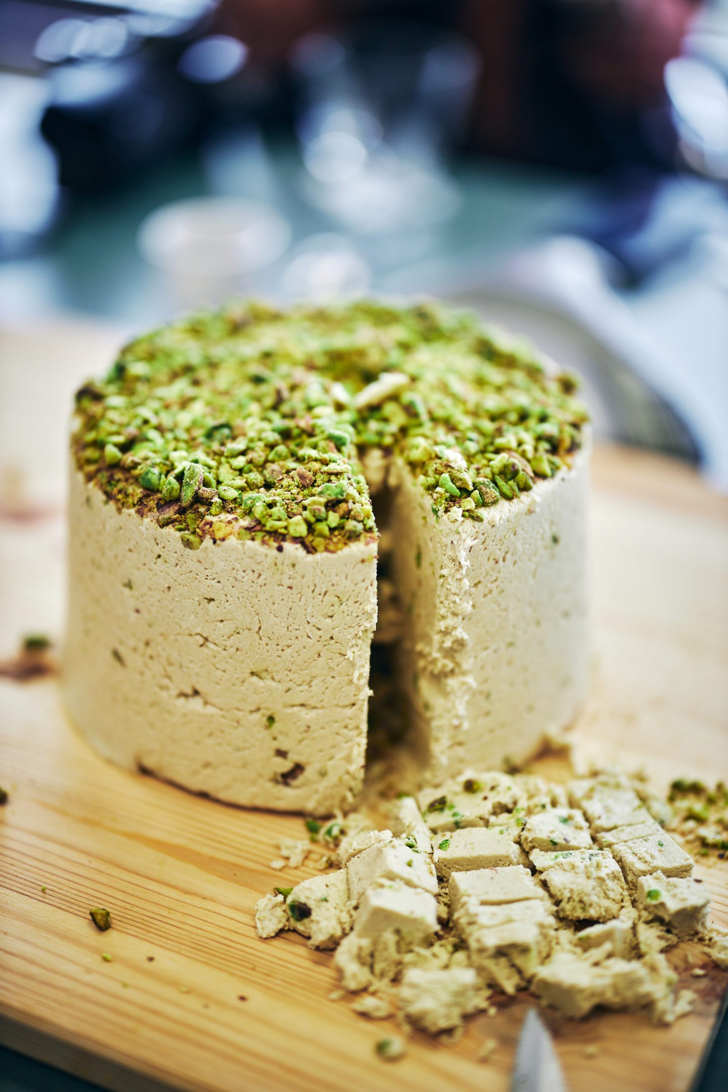 Es war mehr, als würde man mit einer alten Freundin sprechen, als mit dem CEO der Firma selbst. Aber das habe ich wirklich sehr begrüßt und ich habe mich sehr wohl gefühlt. Zum Mocca und Tahini gab es auch leckeren Halva. Dies ist eine Süßwarenspezialität – sehr süß – mit Tahini als ihre Hauptzutat. Auch hier verkauft Al Arz verschiedene Sorten und wir dürfen von einem riesengroßen Pistazien-Halva kosten. Ich hatte Halva nie zuvor probiert, finde den Geschmack sehr süß, aber dennoch super lecker, da auch die salzige Komponente von gerösteten Sesam, sowie der der Pistazien sehr deutlich zum Vorschein kam. Falls ihr noch nie Halve gekostet habt, probiert es einmal. Es ist so anderes, als das, was man von europäischen Süßspeisen kennt. Ich probiere immer gerne Neues.