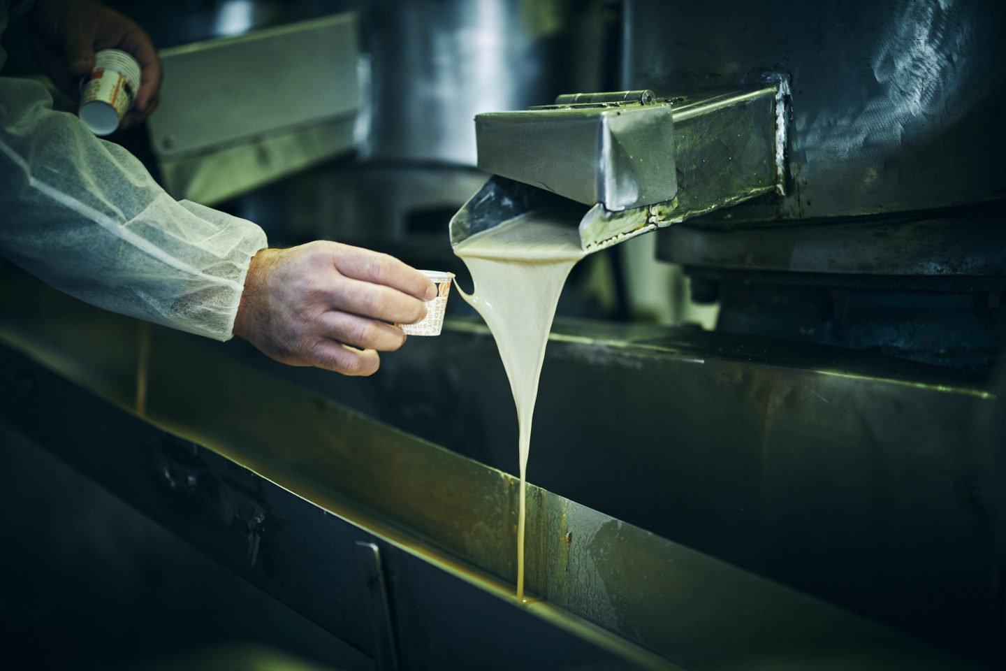 Zuerst wird er zu einer zähen Masse gemahlen. Beim zweiten Durchgang erst, wird er zu cremigem und flüssigem Tahini.
