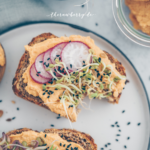 Hummus ist mehr oder weniger immer in unserem Kühlschrank. Ich liebe es, wie unfassbar vielseitig man ihn einsetzten kann. Wir streichen ihn auf Toast, Körnerbrot, herzhafte Pfannkuchen oder dippen Gemüse darin. Euch viel Spaß beim Nachmachen. Ich freue mich natürlich, wie jedes Mal, sehr über euer Feedback.